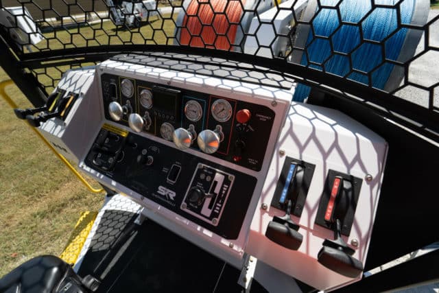 Sherman+Reilly’s® Heritage Series PLW-400H pilot line winder is a four-drum pilot line winder with a Tier 4 Final, turbo-charged 71 hp diesel engine providing the unit with 4,000 lbs. of pulling force. Control each of the four pilot lines by remote reel engagement accessible on the control panel located inside the patented Safe-Zone® enclosure with patented Ocu-View™ screen. Drum capacity is 16,500 feet of PE-12 or 22,000 ft. of 0.44 in. Unitrex® rope per drum. An optional synchronized levelwind switch supports the installation of four conductors at once.